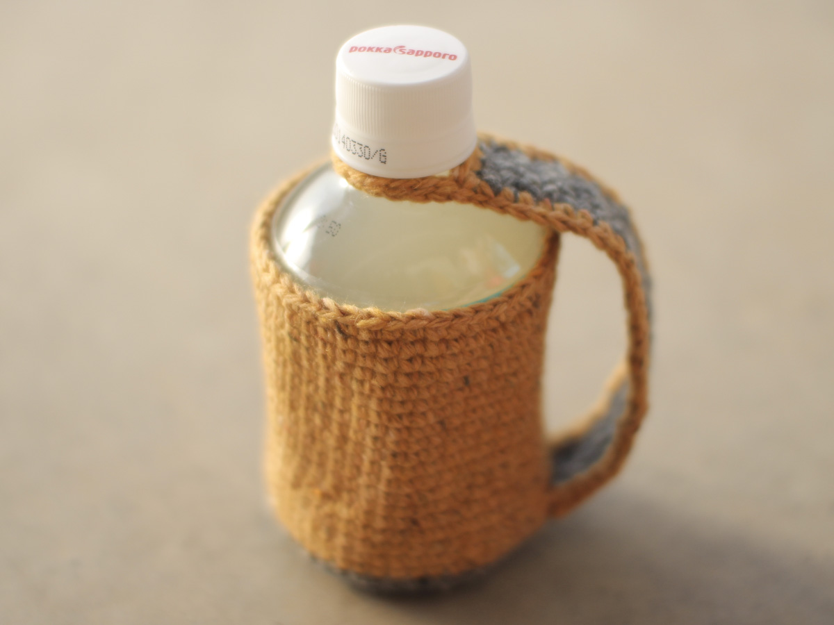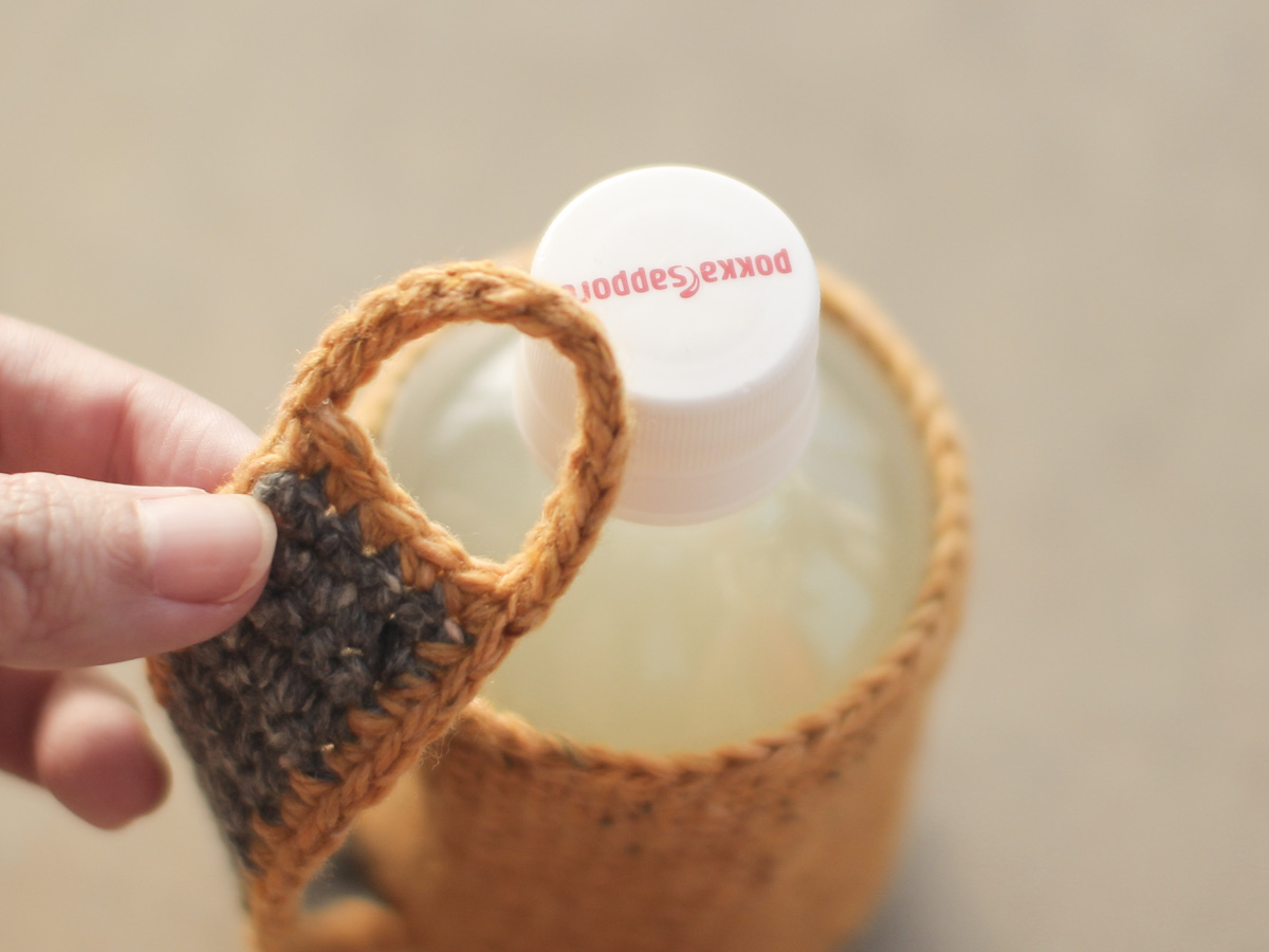 暖かいペットボトルがなるべく冷めにくなるようにと作ったホルダーですが、もちろん冷たいもにも使えます。